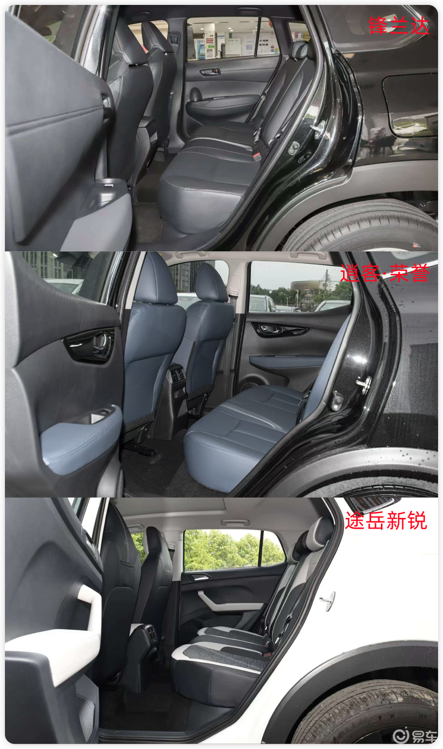 途岳新锐的长宽高都不占优势,好在轴距表现不错,达到2651mm,是三款车当中最长的,因此后排腿部空间也要比锋兰达出色一些,而且给到了后排出风口和USB/Type-C接口。不过大众车型的通病它也有,中间地台凸起较高,乘客放脚不太方便。