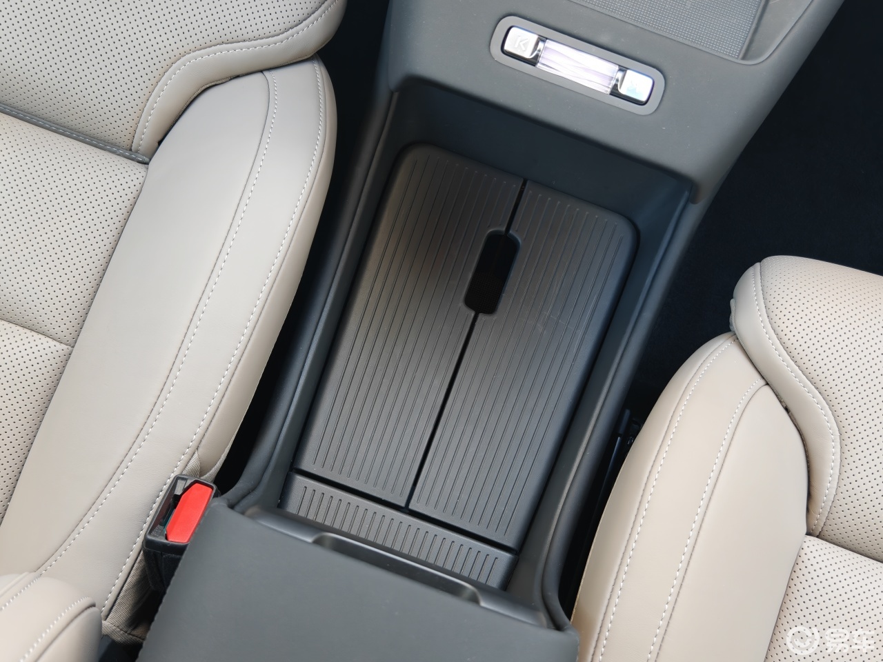 另一个很精妙的地方是,中央操纵台的杯架其实是一个可伸缩的设计,这样能够把杯架隐藏在扶手箱里面,就有一个开放式的中央储物格。