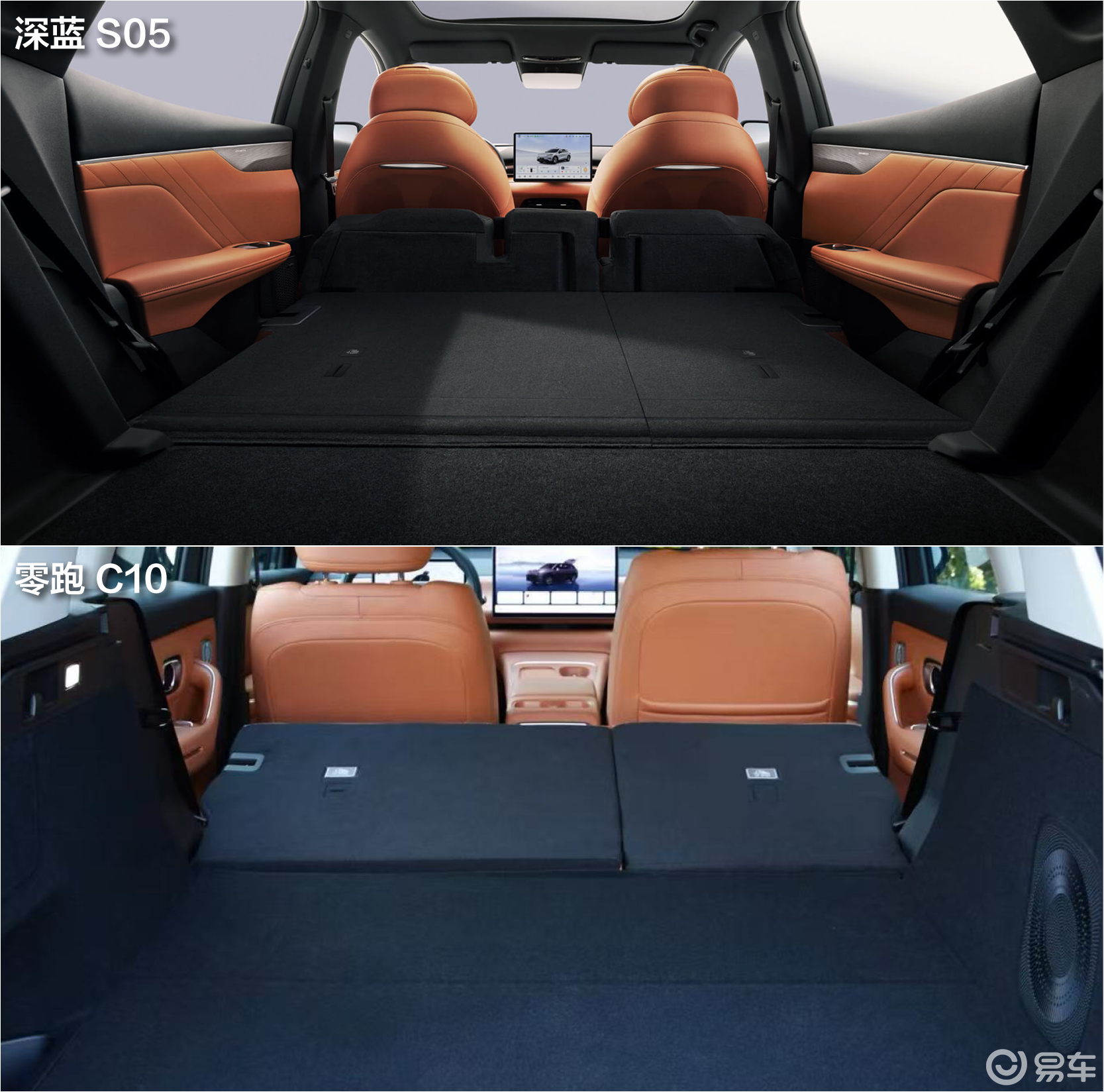 值得一提的是,两车的后排座椅都支持4/6比例放倒,不过深蓝S05的座椅采用特殊的折叠机构,在后排座椅放倒后座椅靠背与后备厢地板几乎是纯平的状态,无论躺人还是放物都更有优势一些,零跑C10的座椅放倒后会有个倾斜角度。