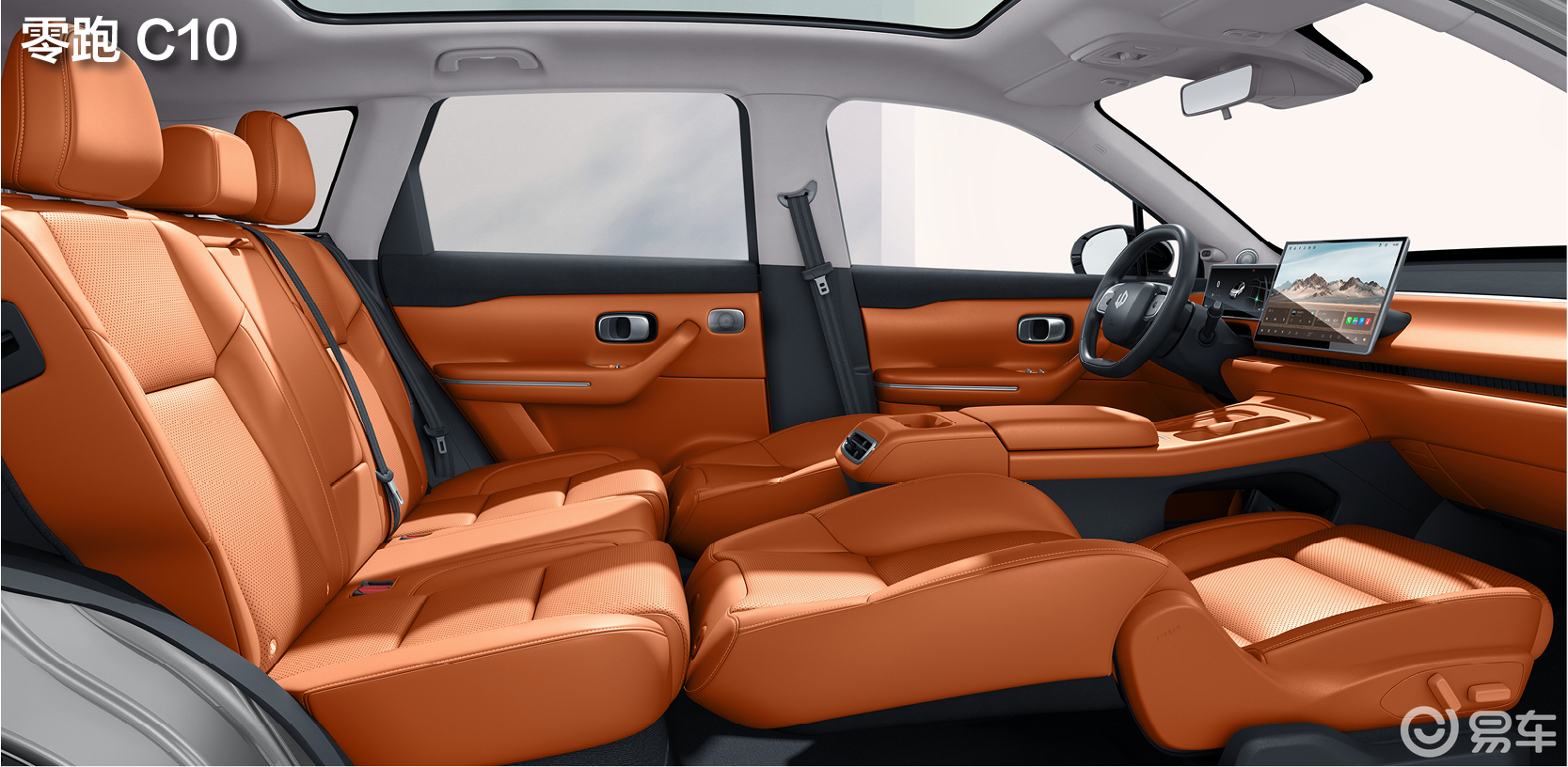 零跑C10的座椅也有花样,前排座椅靠背180°一键躺平后可跟后排坐垫连在一起,坐在后排把腿搭在前排靠背上可以像坐沙发一样放松一下。不过前排坐垫和靠背之间会有个比较大的断层,且后排坐垫是倾斜的,所以想完全躺下伸展身体可能不太舒服,需要垫东西。另外,其前排座椅通风、加热需要单独选装,加上20英寸轮圈、环保座椅面料、方向盘加热、灯语、氛围灯等套装的目前优惠后价格是5000元,对舒适性要求较高或者不差钱的朋友可以考虑。