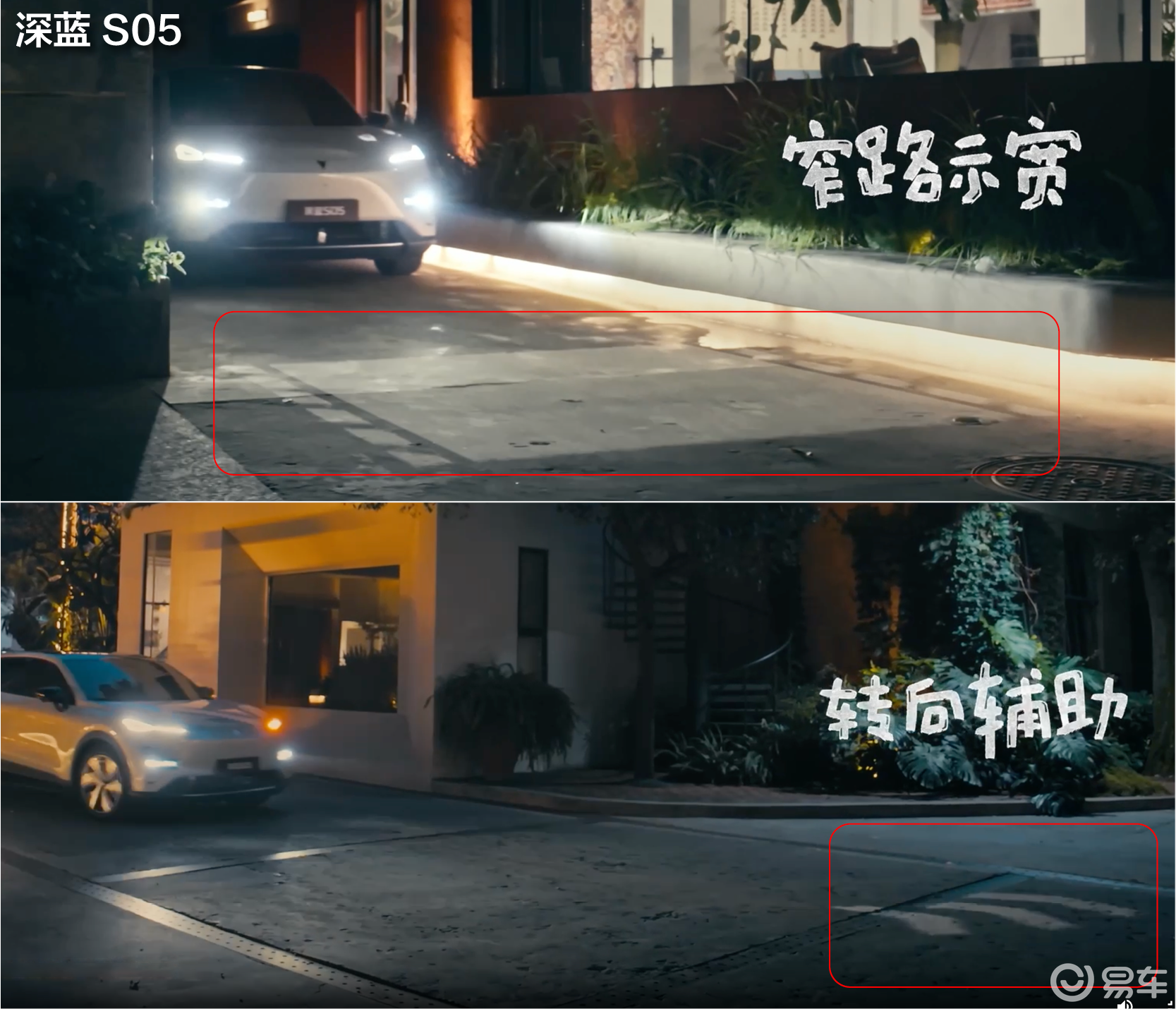 在“花活”方面,深蓝S05配有智趣光影大灯,能在遇到窄路的时候在车前投射出两条与车身等宽的边线,提前预判是否能安全通过,还能结合地图将变道、方向等导航信息投射到车前,辅助夜间行车,对新老司机都有帮助。