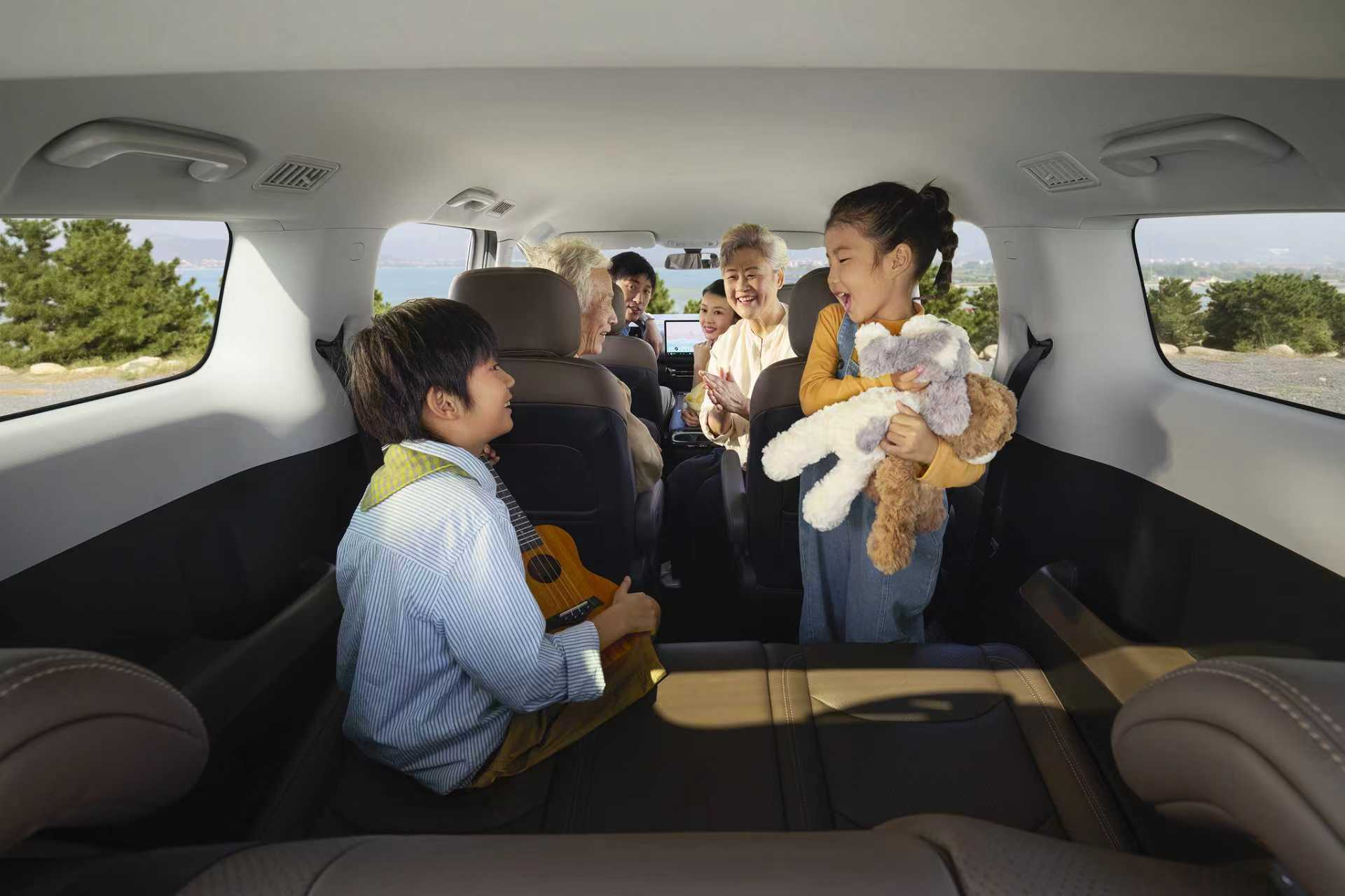 空间是星光730的核心优势之一。新车采用“2+2+3”真7座布局,内部有效车身长度达3331mm,肩部横向宽度为1500mm,第三排空间利用率高达88%。二排中央过道宽度达到230mm,第三排地板至顶棚高度超过1.2米,确保了每一排乘客,尤其是第三排乘客的乘坐舒适性与进出便利性。