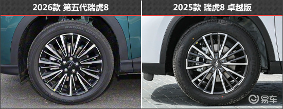 2026款第五代瑞虎8共推出8款车型,在数量上比2025款瑞虎8卓越版多6款,不过,老款车型可以选装7座布局,选装费用为3000元。售价方面,新款车型的起售价要低于老款车型,但顶配车型上涨了1万元。本次对比选择了两款售价完全相同的车型,以便能够更加直观地看出新老款车型在配置层面的具体差异。