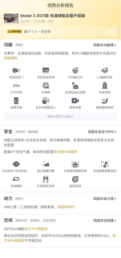 在面对这样一辆二手特斯拉Model 3时,评估其性价比是一个复杂的过程,需要综合考量多个因素。首先,从积极的方面来看,这辆Model 3的标准续航里程、自动驾驶辅助系统(L2)以及特斯拉的品牌影响力,都是其吸引消费者的重要特点。尤其是对于首次接触电动汽车或特斯拉的用户而言,这些亮点往往能提供全新的驾乘体验,并增加车辆的吸引力。其次,从经济角度考虑,二手Model 3的价格通常会比新车有显著的折扣,这对于预算有限的消费者来说,无疑是一种经济上的诱惑。同时,电动汽车较低的运行成本(如电费相比油费更低、保养频率较小等)也是不容忽视的长期经济效益。然而,选择二手Model 3也伴随着一些潜在的问题和挑战。由于这是一辆纯电动汽车,电池健康状况就成为了买家必须重点关注的因素。电池的健康程度直接影响到车辆的续航能力和性能表现,而二手市场中电池状态的透明度往往不高,这为购买决策增加了不确定性。其次,随着电动汽车技术的快速发展,市场上的新型号不断涌现,它们在续航里程、充电速度、智能化程度等方面都可能优于较早年的Model 3。这意味着即便Model 3在当时属于先进技术,但在今日的对比下也可能显得相对落后。此外,特斯拉独特的售后体系和零部件价格,有时会被批评不够亲民或透明,这也是潜在车主需要考量的一点。综上所述,在评估二手特斯拉Model 3的性价比时,消费者应当根据自身的需求、预算以及对新技术的接受程度来做出选择。如果追求先进的自动驾驶技术和独特的驾驶体验,且对电动汽车技术有一定的了解和信任,那么二手Model 3或许是一个不错的选择。然而,如果更注重车辆的经济实用性或对新技术持有谨慎态度,可能还需要将目光投向更广泛的市场,对比不同品牌和型号的电动汽车或甚至燃油车,以找到最适合自己的车型。
