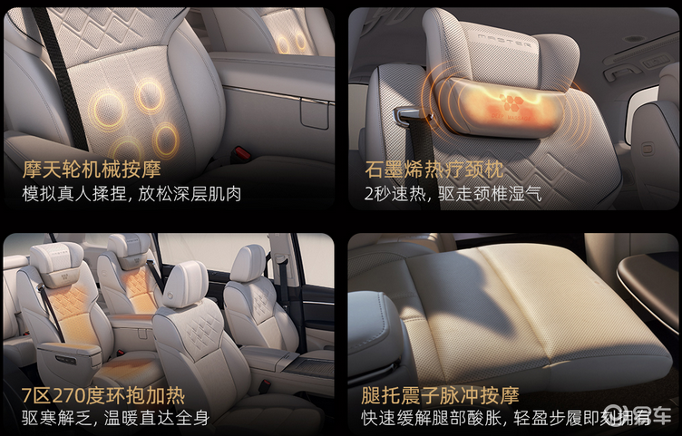 内饰搭载基于鸿蒙系统的智能座舱,全系标配车载冰箱、YAMAHA音响、第二排双零重力座椅及第三排座椅电动调节。中高配车型提供后排17.3英寸娱乐屏,并可选华为乾崑智能辅助驾驶系统。车机系统继续采用Harmony OS,支持触控、语音和手势多种交互方式,可实现多屏联动、车家互联及智能钥匙等功能,解锁方式涵盖手机App、NFC卡片钥匙与实体钥匙,并支持远程授权用车。