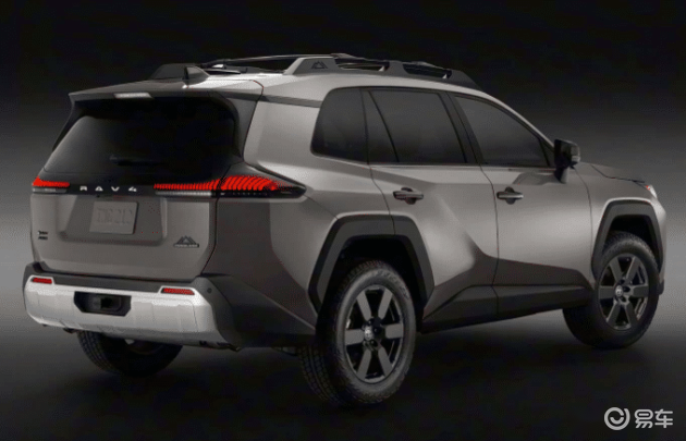丰田RAV4荣放尺寸为4620×1855×1680 mm,轴距2690mm。车身比例更显方正,线条平直有力,轮拱造型近乎方形,搭配较高的离地间隙,实用性与户外感更强。车尾以平直线条为主,一条粗壮饰条连接两侧尾灯,双边排气布局增添些许动感,整体造型沉稳扎实。