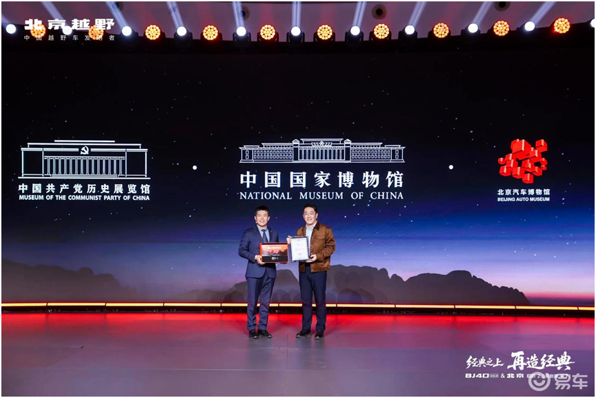BJ40探险家在发布会当天被北京汽车博物馆正式收藏,成为馆内展品。此前,BJ40增程版曾亮相中国国家博物馆,BJ80C阅兵车则被中国共产党历史展览馆收藏。至此,北京越野成为国内首家产品被“三馆连藏”的汽车品牌。