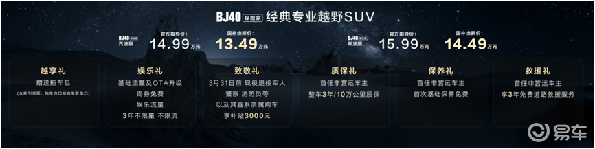 国补后13.49万起 BJ40探险家携六重礼遇上市