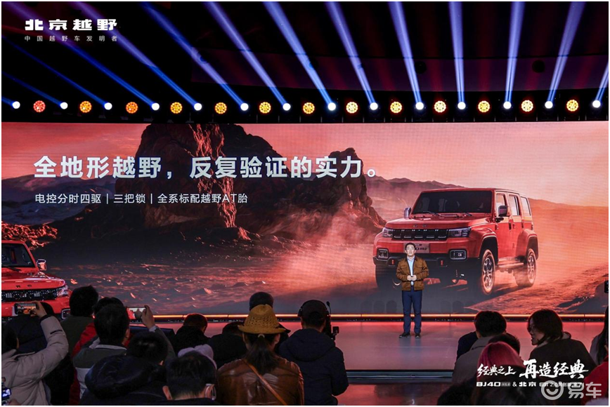 发布会现场,北京越野宣布为BJ40探险家购车用户推出价值12000元的六重尊享礼遇,涵盖拖车装备、流量服务、专属补贴、质保保养与道路救援等多方面权益,进一步提升车型的市场吸引力。