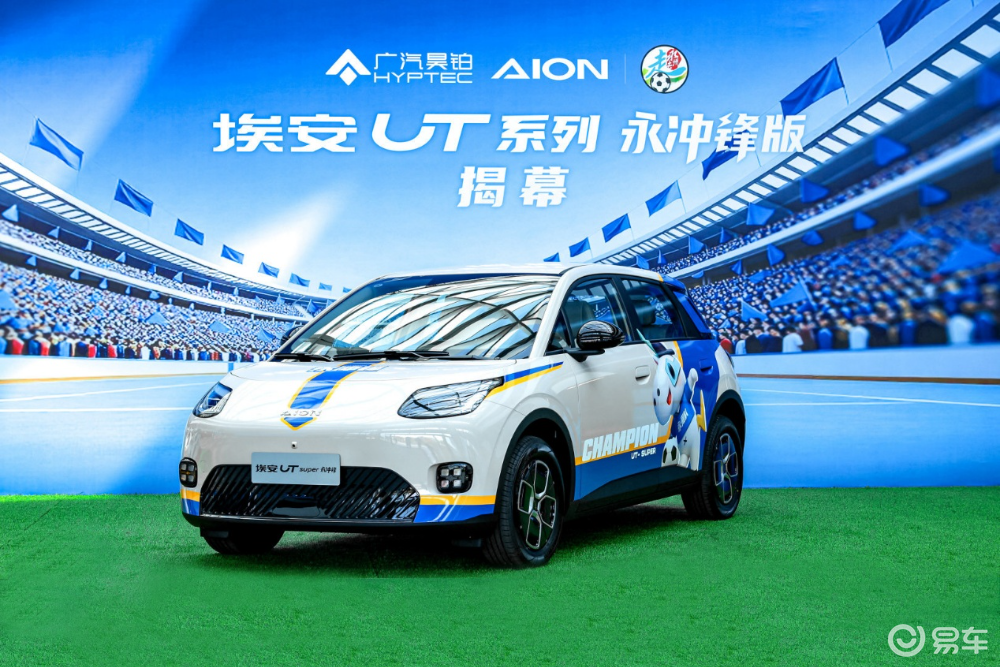 冠军间的合作“永州足球队”刚拿了冠军,埃安登场新车登场,“埃安UT永冲锋版”。