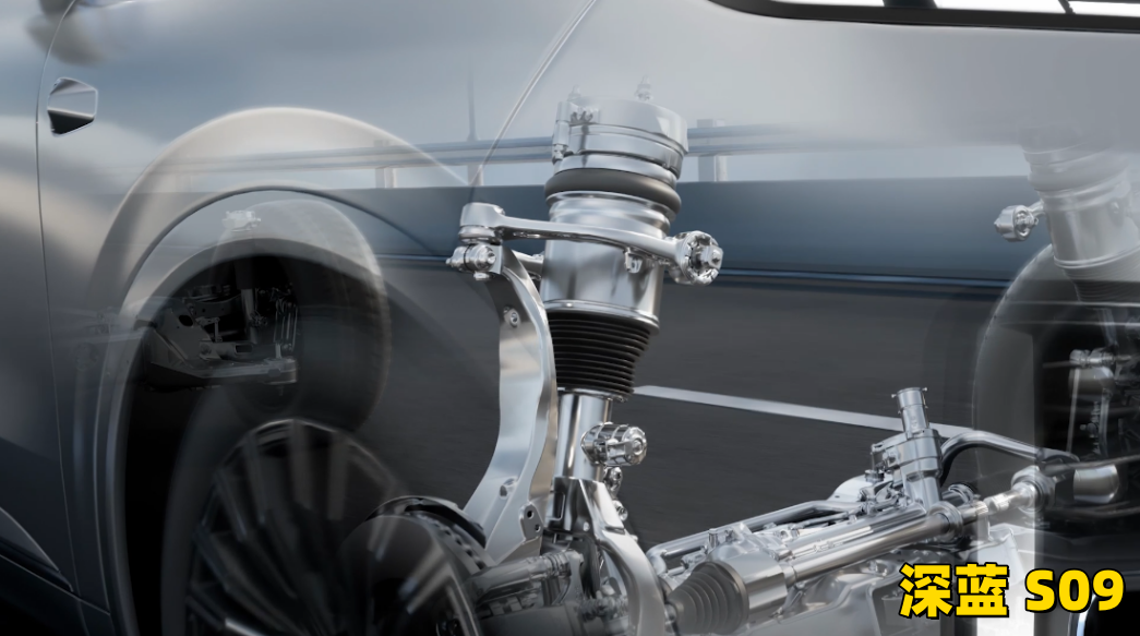 底盘和舒适配置也会在极大程度上影响长途驾乘体验,深蓝S09标配CDC+空气悬架,底盘为前双叉臂+后H臂多连杆结构,采用铝合金材质,还配备8个液压衬套;银河M9的底盘结构是前双叉臂+多连杆,材质是钢制,只有CDC悬架,空气悬架需要额外花1.3万元选装。