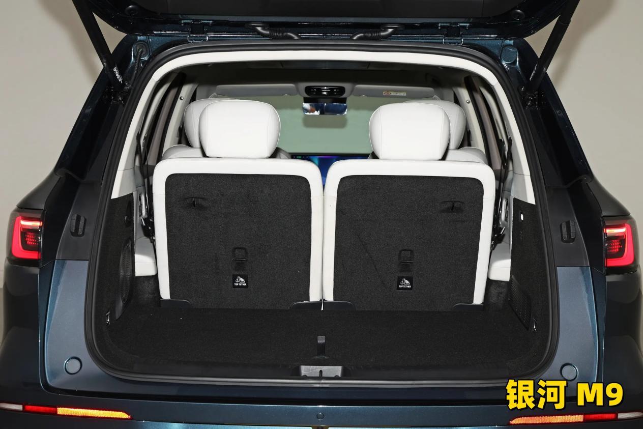 必须要说的是,后备箱的装载能力更能直接决定返乡幸福感,我做了实测:在六座满员的情况下,放置20寸行李箱。结果显示,深蓝S09的427L后备箱能轻松放下7个,还能再塞背包和年礼;而银河M9的328L后备箱只能放下4个,剩余行李堆在后排,挤占家人乘坐空间。对于多口之家春节返乡的大量物品需求,深蓝S09的后备箱实用性远超银河M9。
