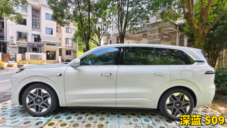 而这份由内而外的从容感,也延伸至车辆的方方面面。接着,咱们从外观开始详细分析分析这两辆车。两车都是大六座SUV,长宽高数据接近(深蓝S09:5205x1996x1800mm;银河M9:5205x1999x1800mm),肉眼难分大小,核心差异集中在轴距上——深蓝S09轴距为3105mm,银河M9轴距为3030mm,前者比后者长出75mm。这一轴距优势让深蓝S09的后排腿部空间更有竞争力,