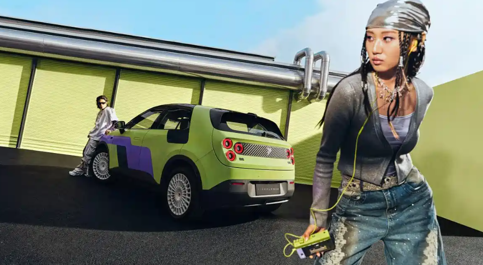 外观设计上,该车以新生绿为车身基底,搭配贯穿前盖至车身两侧的霓虹紫拉花,车门处点缀胶片黑颗粒质感拉花,还原千禧年霓虹街头的视觉氛围,同时融入流畅曲面线条与速度感斜面切割,兼顾复古韵味与现代科技感。