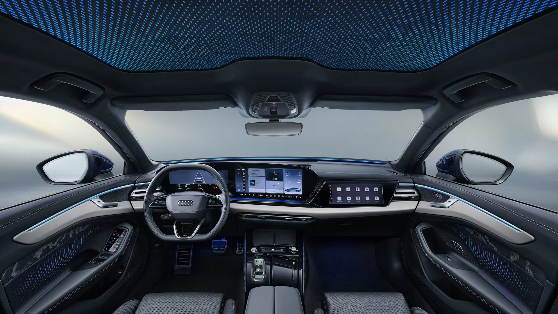 智能方面,华为乾崑智驾深度定制上车,双激光雷达+奥迪VMM车辆运动管理模块协同,城区NOA、高速NOA、跨层记忆泊车、循迹倒车全场景覆盖。座舱是5屏联动——14.5英寸中控屏、11.9英寸虚拟座舱、13.1英寸W-HUD、10.9英寸副驾屏加手机屏,语音助手0.2秒响应,支持连续对话和方言识别。