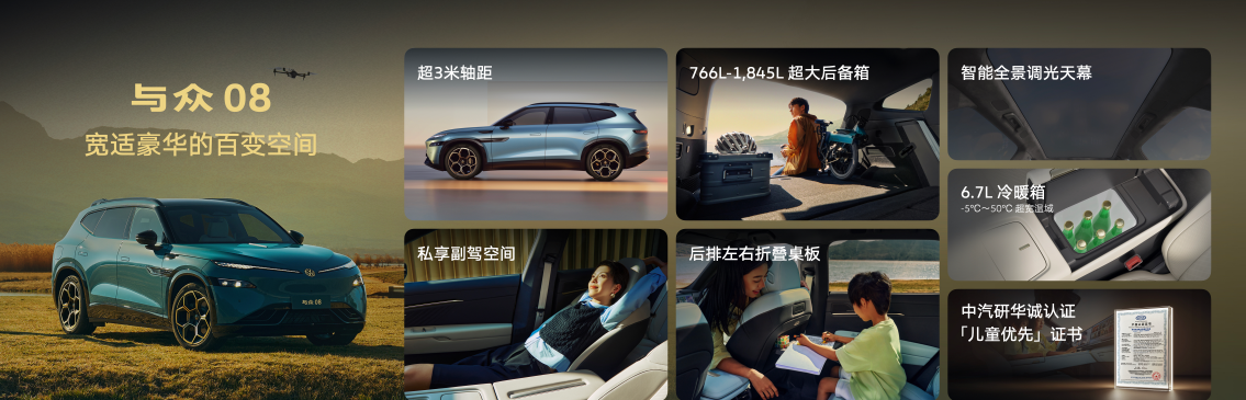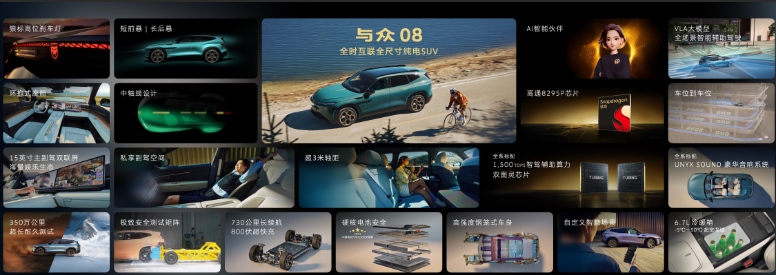 新势力有的智能化,与众08有;新势力没有的安全与品质,与众08更有。