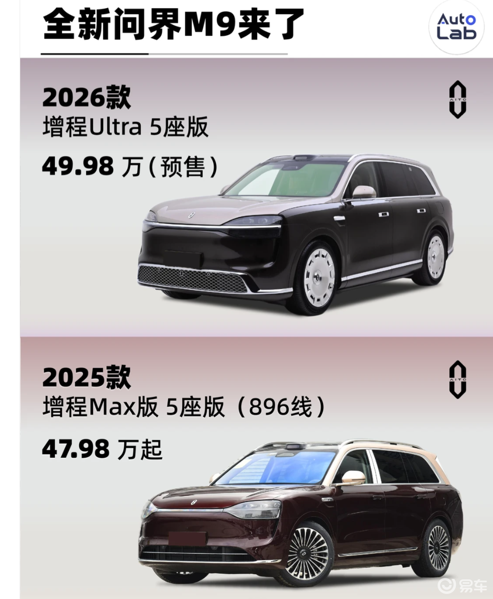 2026 款问界M9预售49.98万起,比老款贵 2 万
